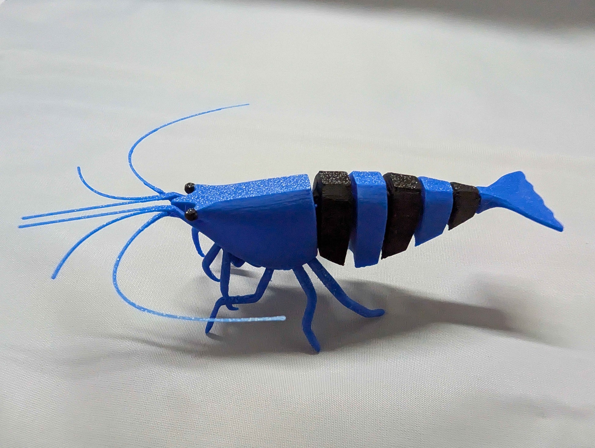 Bring the striking beauty of freshwater shrimp to your desk, shelf, or display with this articulated Shadow Panda Shrimp! Inspired by the mysterious Caridina Shadow Panda shrimp, this model features elegant black and blue banding and fully articulated segments for lifelike movements.